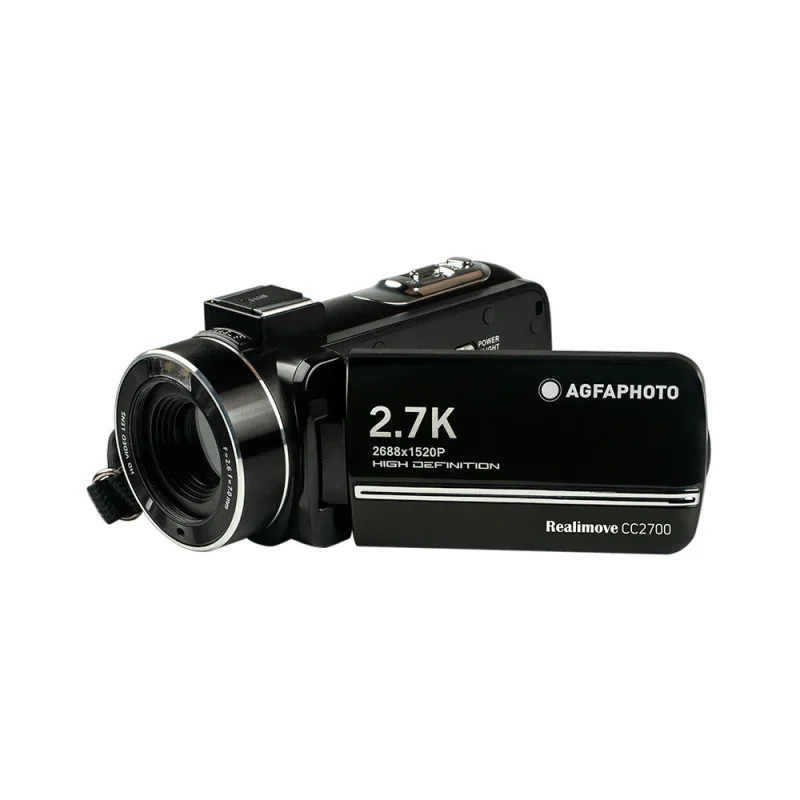 Le caméscope numérique AGFA PHOTO Realimove CC2700 permet l’enregistrement vidéo en résolution 2.7K (2688 × 1520) et la prise de photos jusqu’à 24 MP grâce à son capteur CMOS.