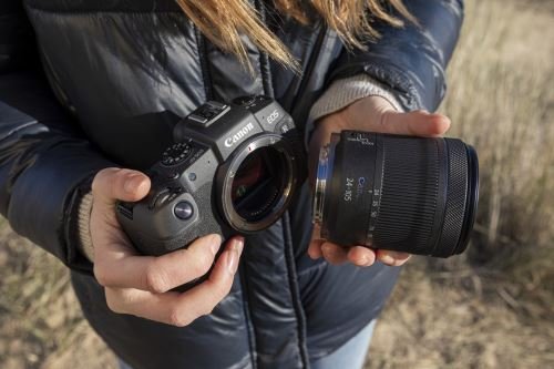 -Appareil photo compact et léger de la gamme EOS R pour la nouvelle génération d’objectifs Canon RF, compatible avec les objectifs EF et EF-S existants via la bague d’adaptation